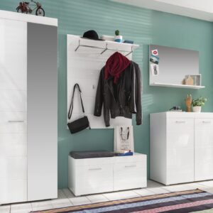 Flur Garderobe Set weiß Hochglanz Garderobenset mit Sitzbank und Schrank Amanda
