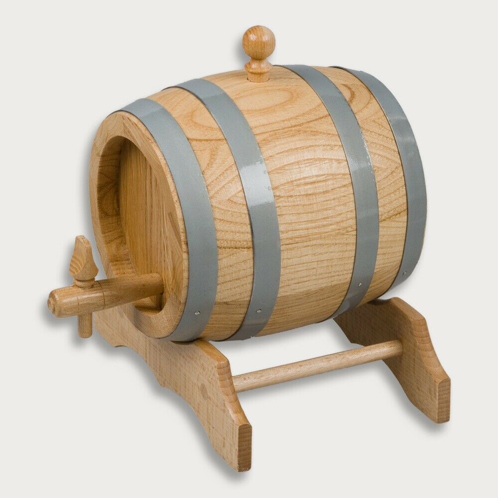 5 Liter Holzfass unlackiert mit Stopfen, Hahn & Bock Eichenfass Bierfass NEU