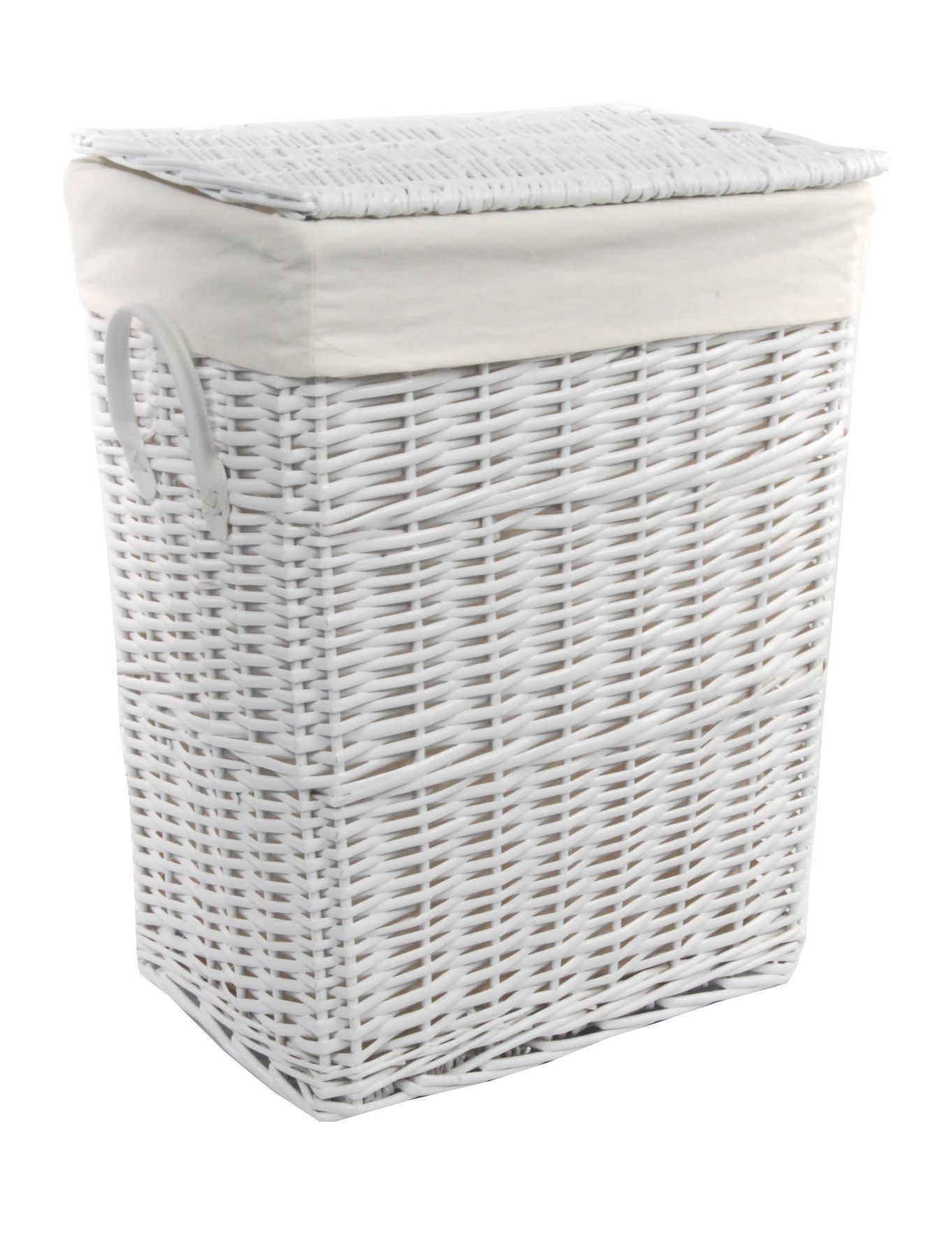 DVier Wäschekorb Wäschetonnen Wäschetruhe Weide weiß rechteckig Bezug Deckel 48x36x62