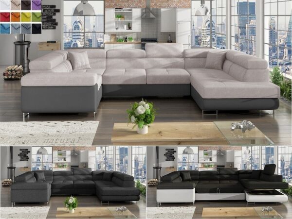 Ecksofa mit Schlaffunktion und Bettkasten LENNY U-Form XXL Wohnlandschaft Polsterecke