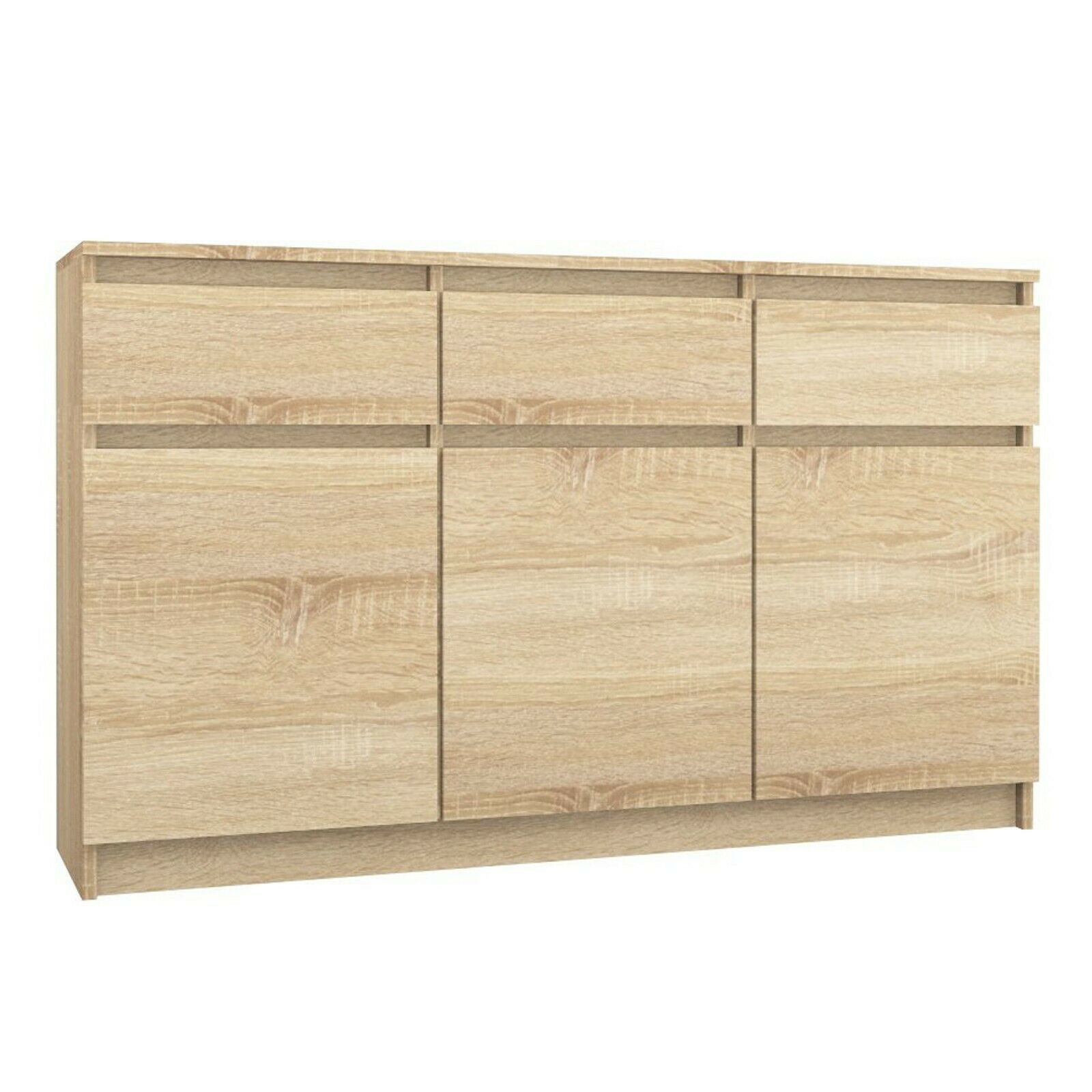 Kommode mit 3 Schubladen 3 Schränke 140cm Klamotenschrank Sideboard sonoma