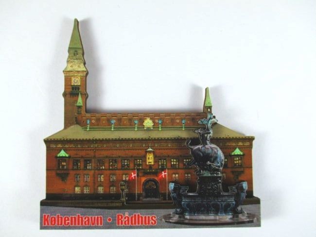 Kopenhagen Rathaus 3 D Holz Souvenir Deluxe Magnet Dänemark Neu