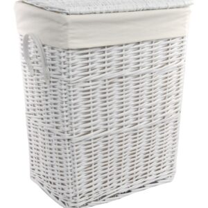 DVier Wäschekorb Wäschetonnen Wäschetruhe Weide weiß rechteckig Bezug Deckel 48x36x62
